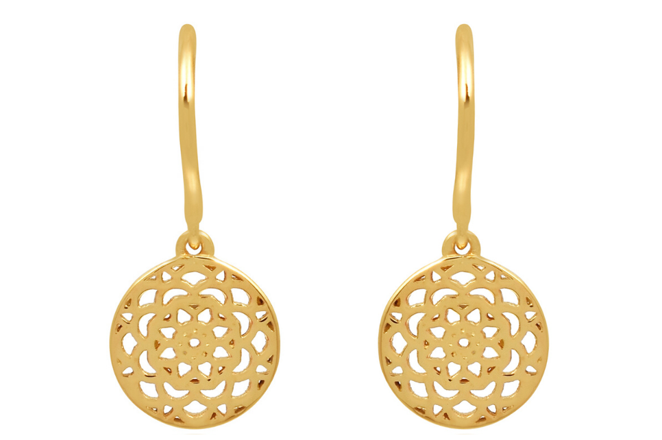Our pretty Talisman charm is seen hanging here on a simple gold hoop earring. A great staple jewellery accessory that will go with pretty much any look.