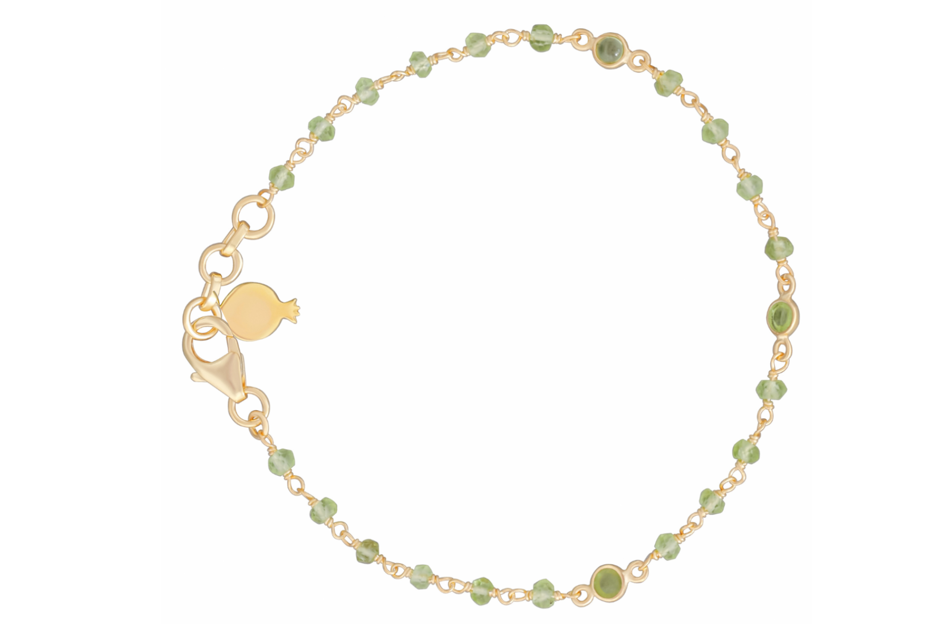 Materials: the bracelet is made of gold plated sterling silver and set with peridot.