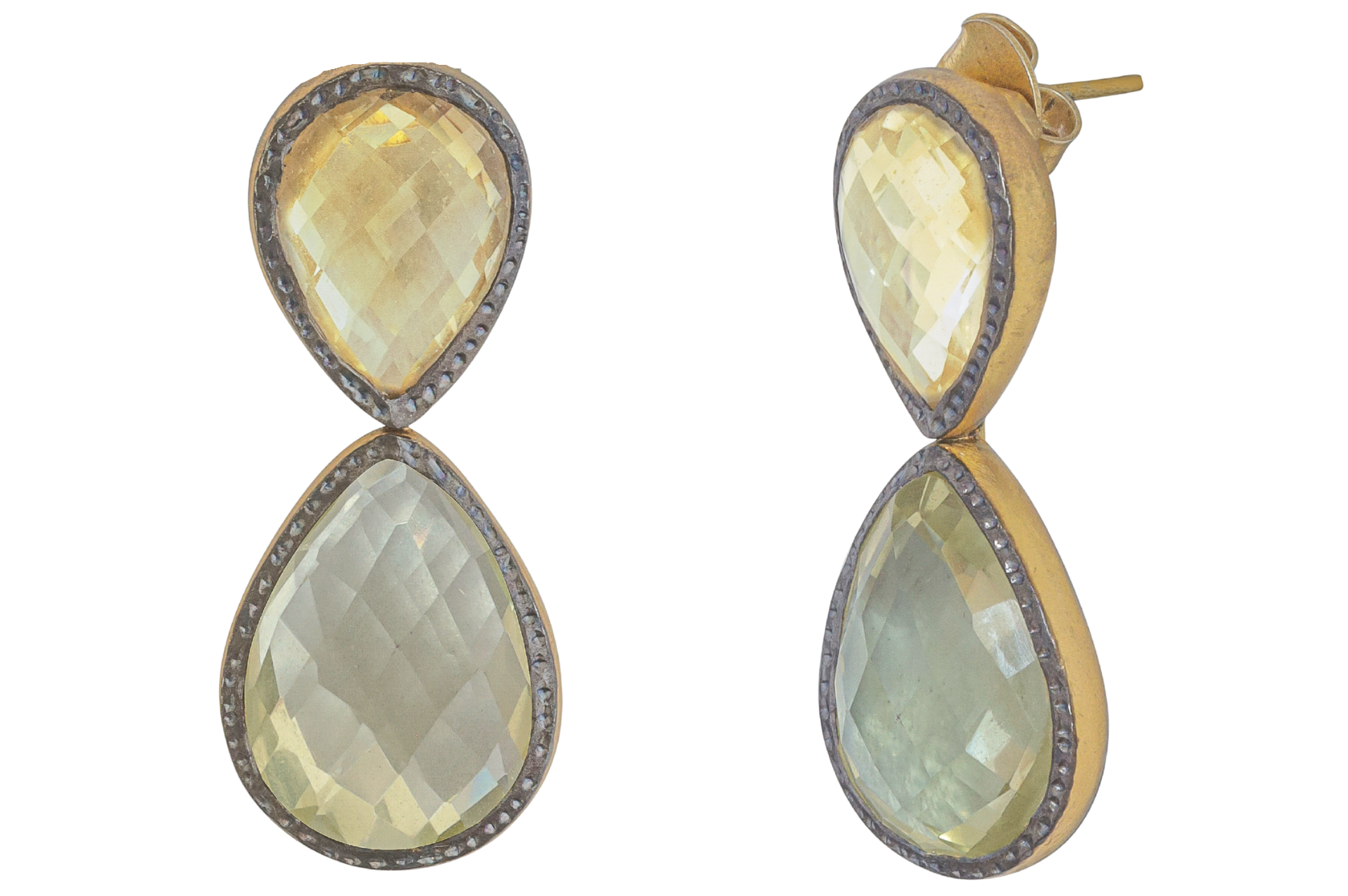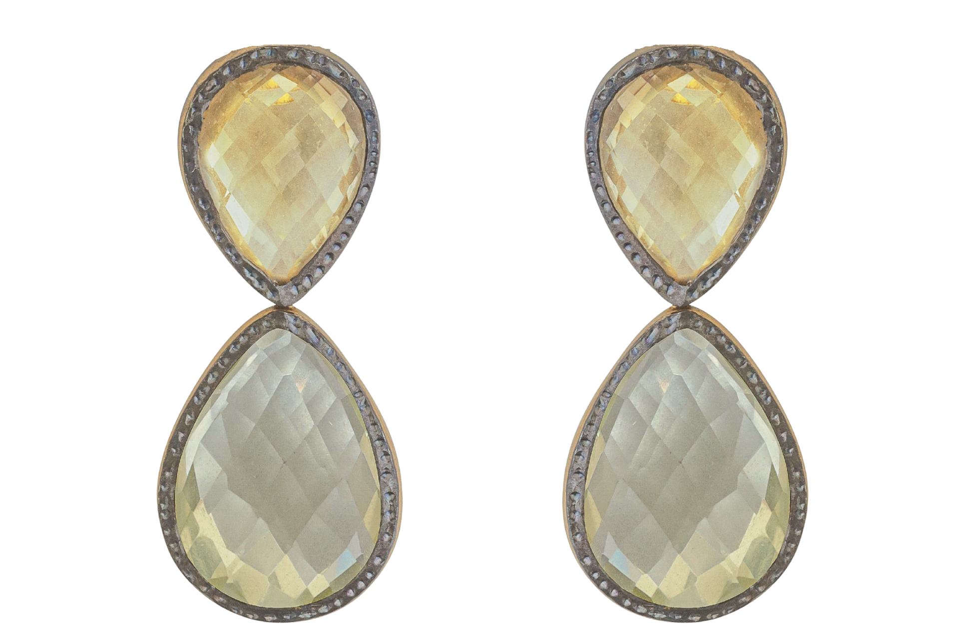 Materials: the earrings are made of gold plated sterling silver and oxidised silver and are set with lemon quartz and citrine gemstones.