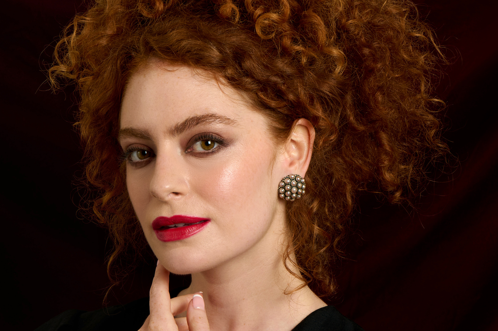 A beautiful pair of one-of-a-kind stud earrings set with turquoise gemstones and with an oxidised silver finish. Ellie wears the pearl version of these stud earrings.