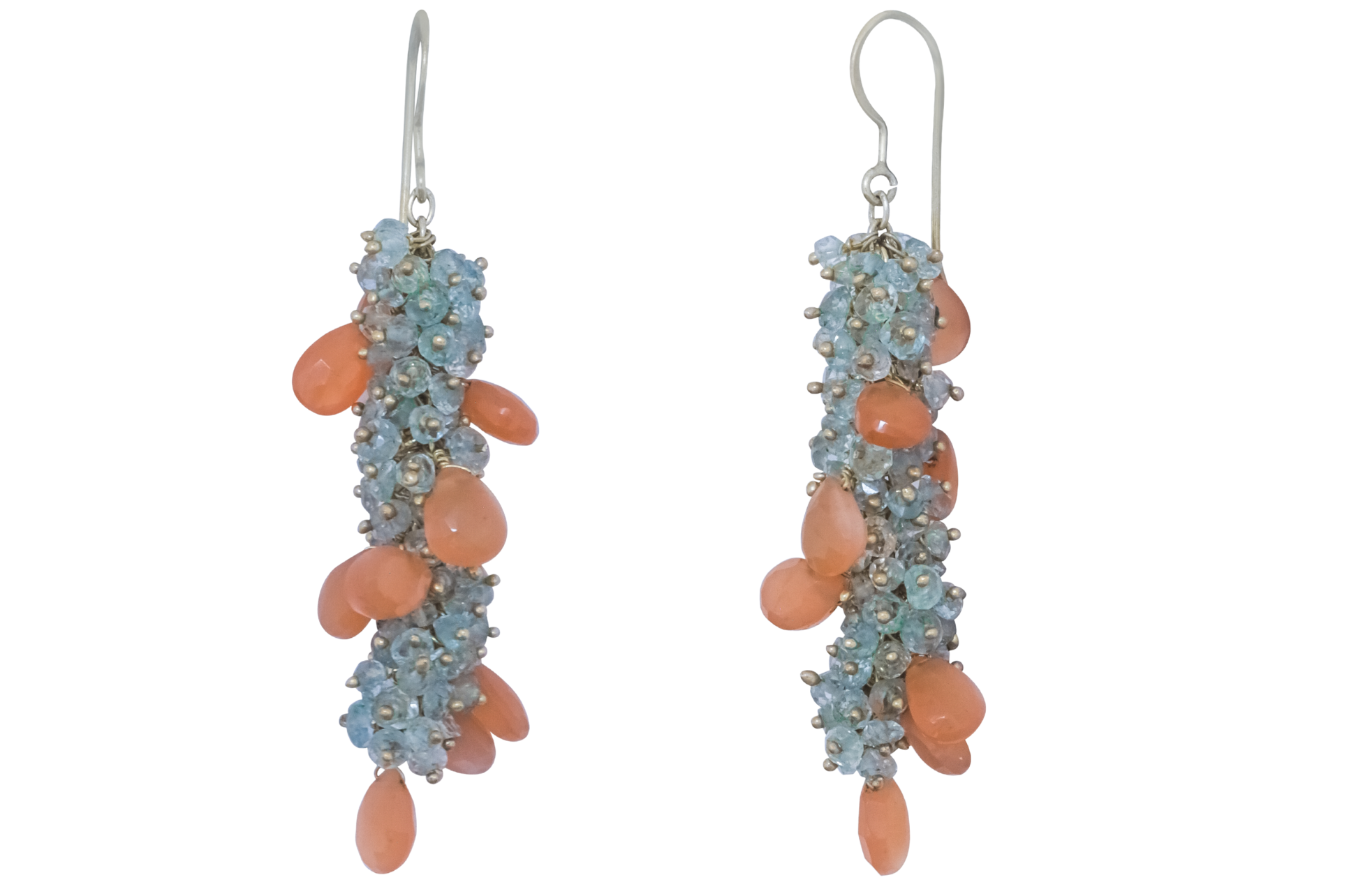 Enid Aquamarine & Carnelian Beaded Drop Earrings